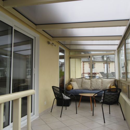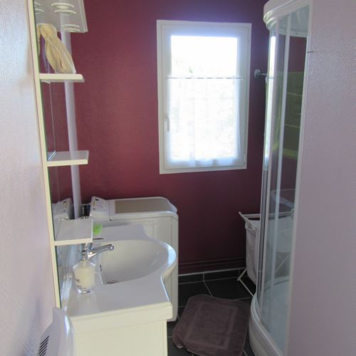L'appartement en location est au premier étage de la Villa Caprice avec un accès indépendant, cour et terrasse privative et se compose d'une véranda, d'un séjour-cuisine (baie coulissante entre la véranda et le séjour-cuisine).